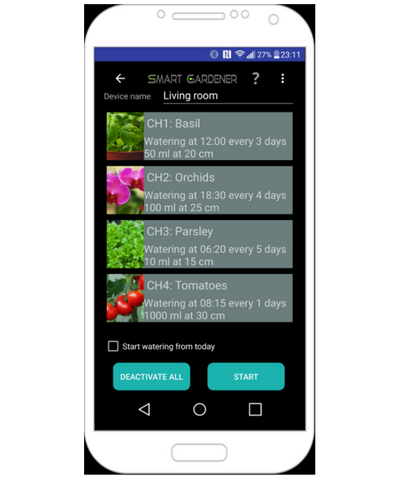 Dann haben wir die Lösung für Sie: Der Smart Gardener bewässert Ihre Pflanzen automatisch nach Ihren Wünschen! Erstellen Sie hierzu ein individuelles Bewässerungsprogamm für jede Pflanzenart und –größe. Sie können die Bewässerung auch jederzeit mit nur einem einzigen Tastendruck von Ihrem Smartphone starten, während Sie auf dem Sofa entspannen.